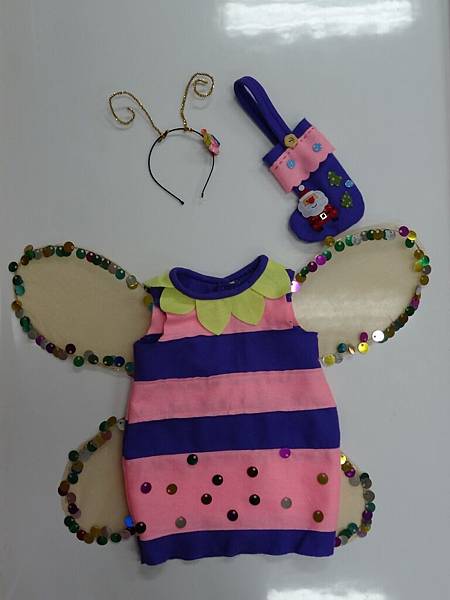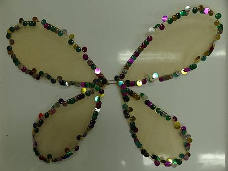 為了讓蝴蝶仙子閃閃動人~所以,媽媽苦命的花了三個小時,一針一線的縫上亮片!(快死人了)